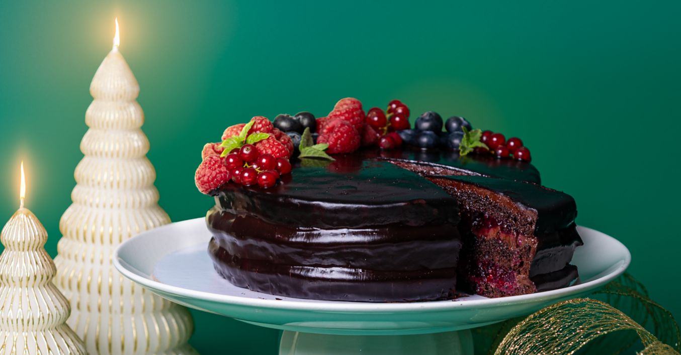 Dupa ce s-a însiropat blatul se pune cremă, peste cremă inserția de fructe și se pune blat din nou, cremă, inserție și blat deasupra. Tortul se îmbracă cu crema rămasă și după aceea turnăm glazura de oglindă peste el, se decorează cu fructe de pădure proaspete.