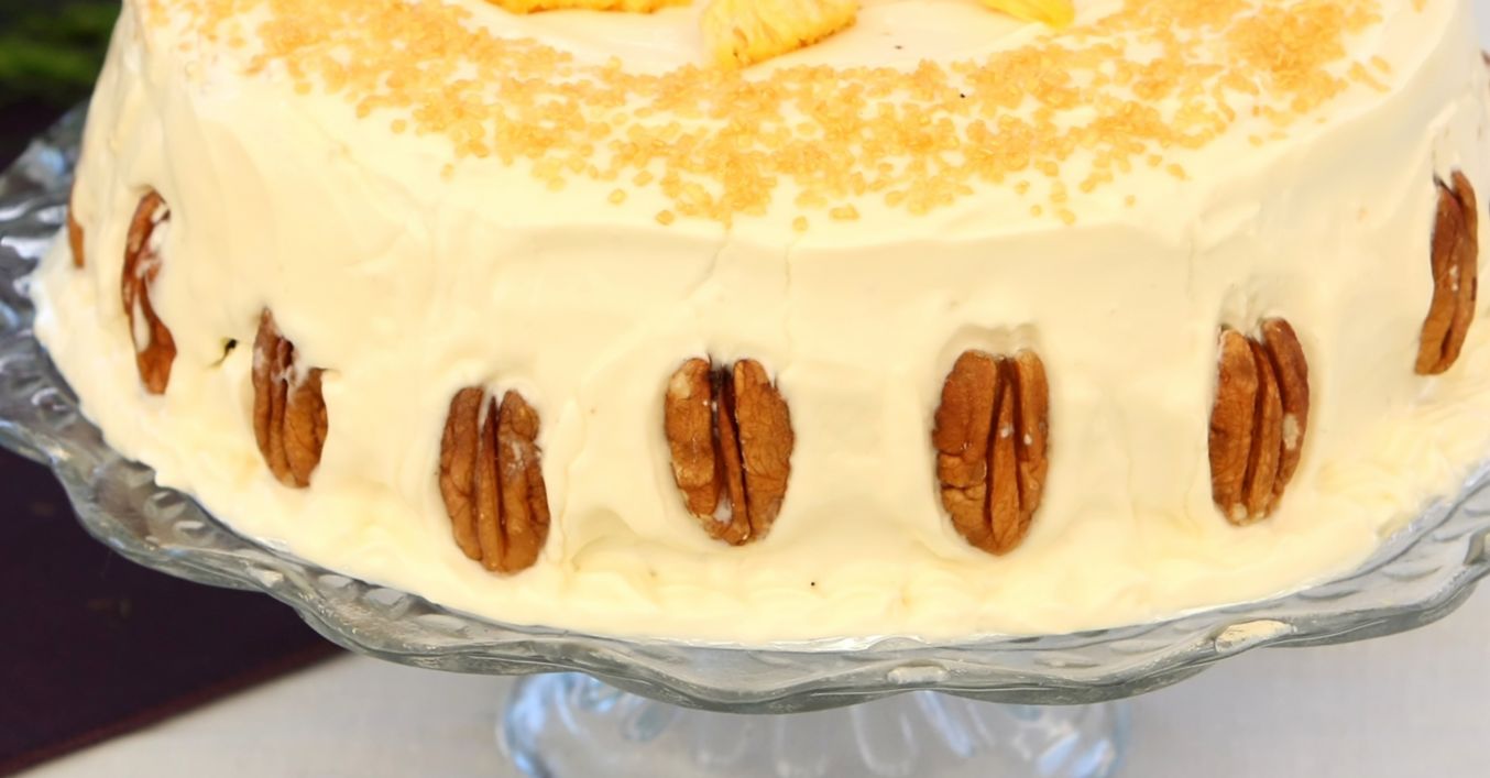 Se pune pe un platou, se nivelează și se ornează cu miez de nucă, felii de portocală și se presară zahăr brun.
