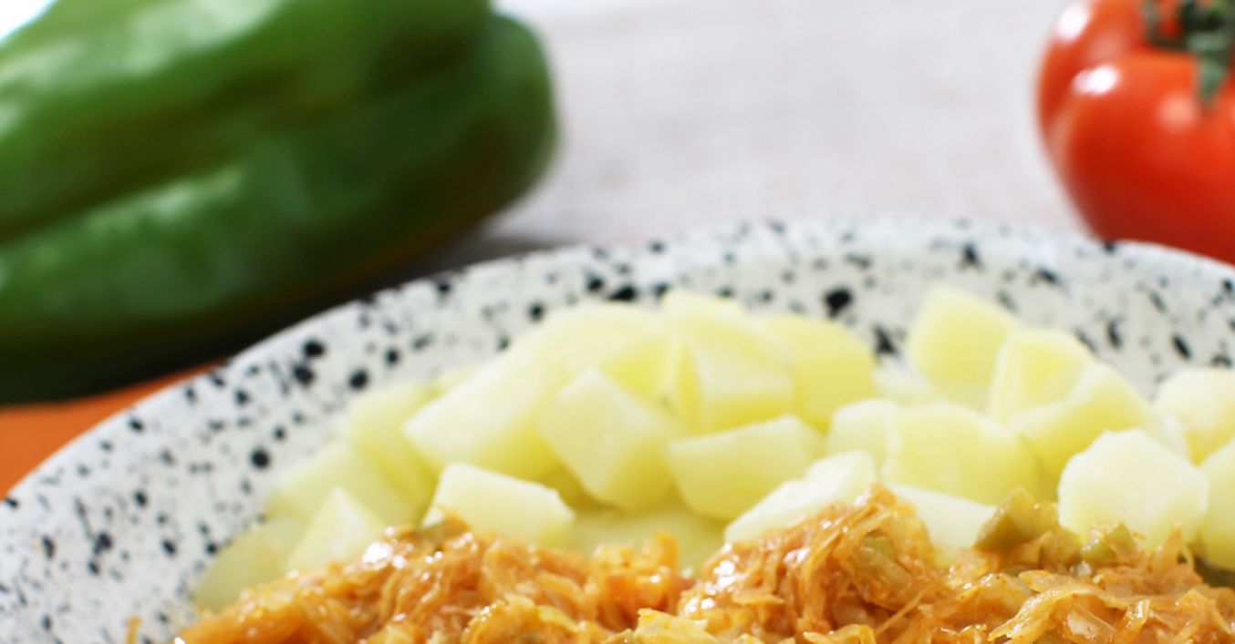 Se servește varza crocantă cu garnitura de cartofi sotați.