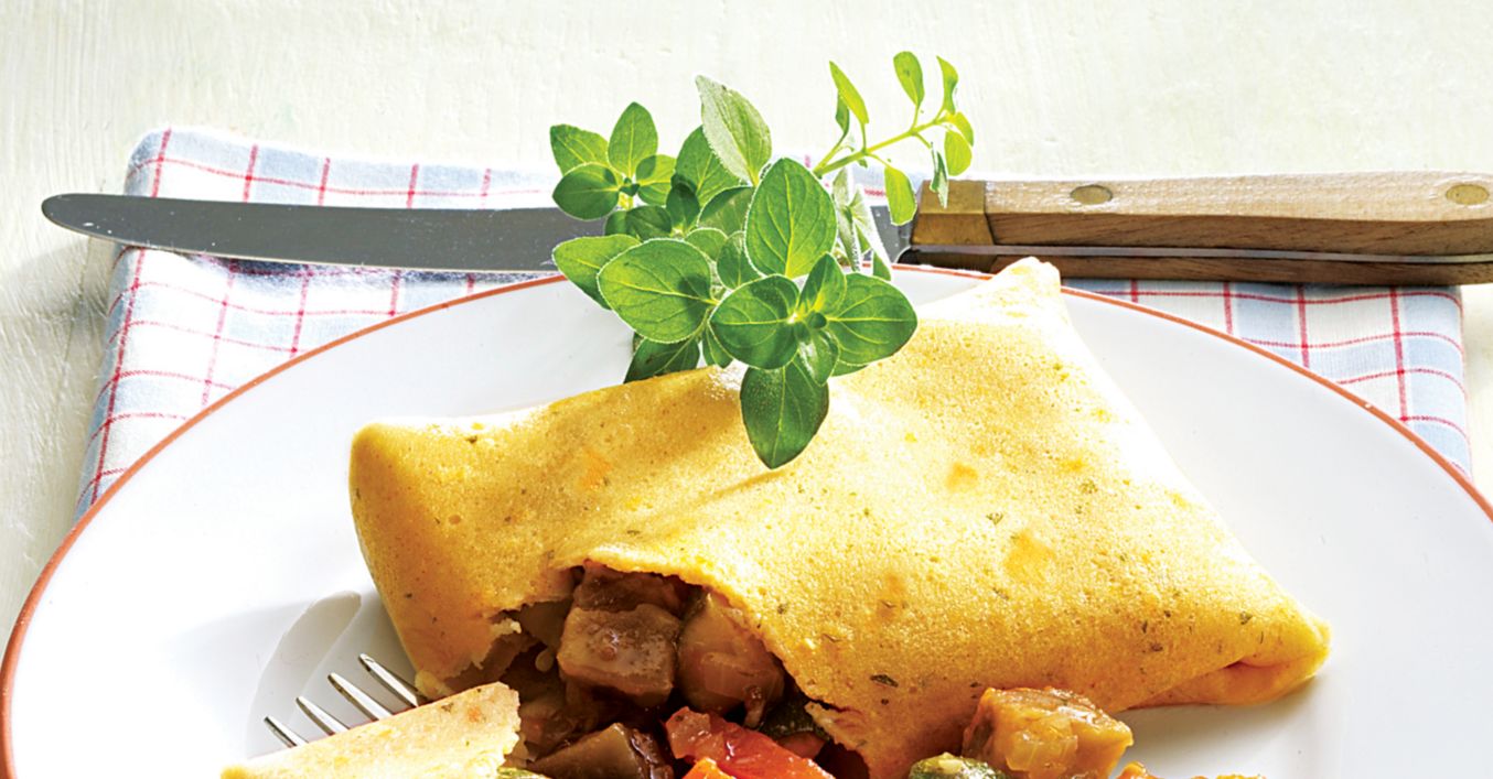 Se împinge clătita pe o farfurie și se ține la cald, până când este gata și cea de-a doua clătită, din aluatul rămas. Se umplu clătitele cu ratatouille și se servesc.