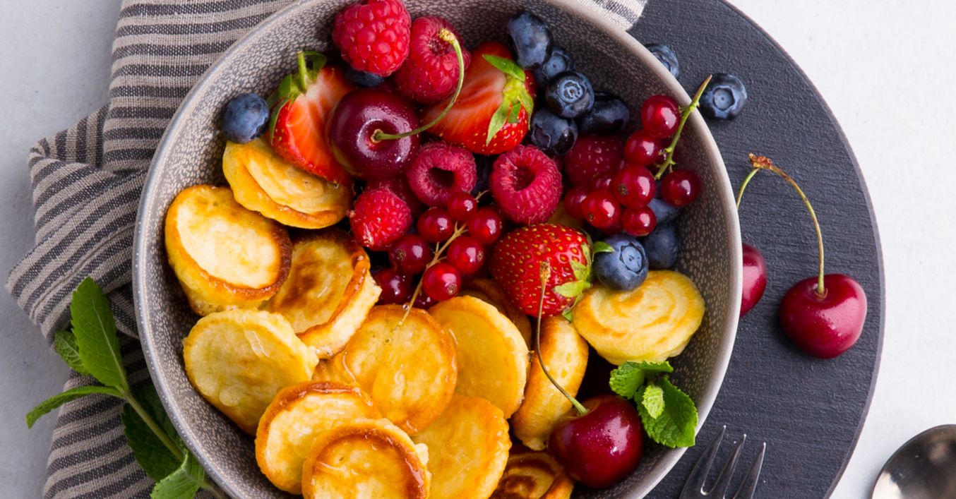 Se încinge o porție de unt și se prăjesc una după cealaltă clătitele. Clătitele se adaugă pe farfurie, se stropesc cu sosul de zmeură și se servesc cu salată de fructe.