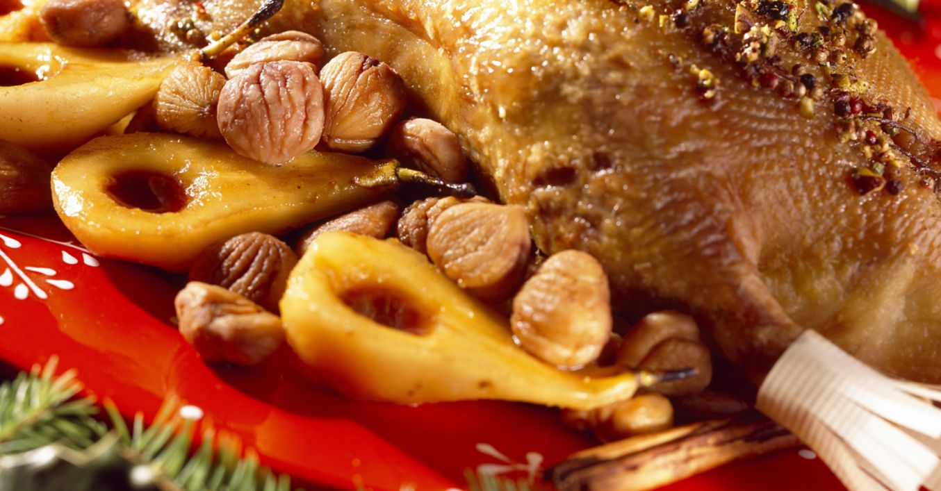 Gâscă la cuptor cu castane și pere