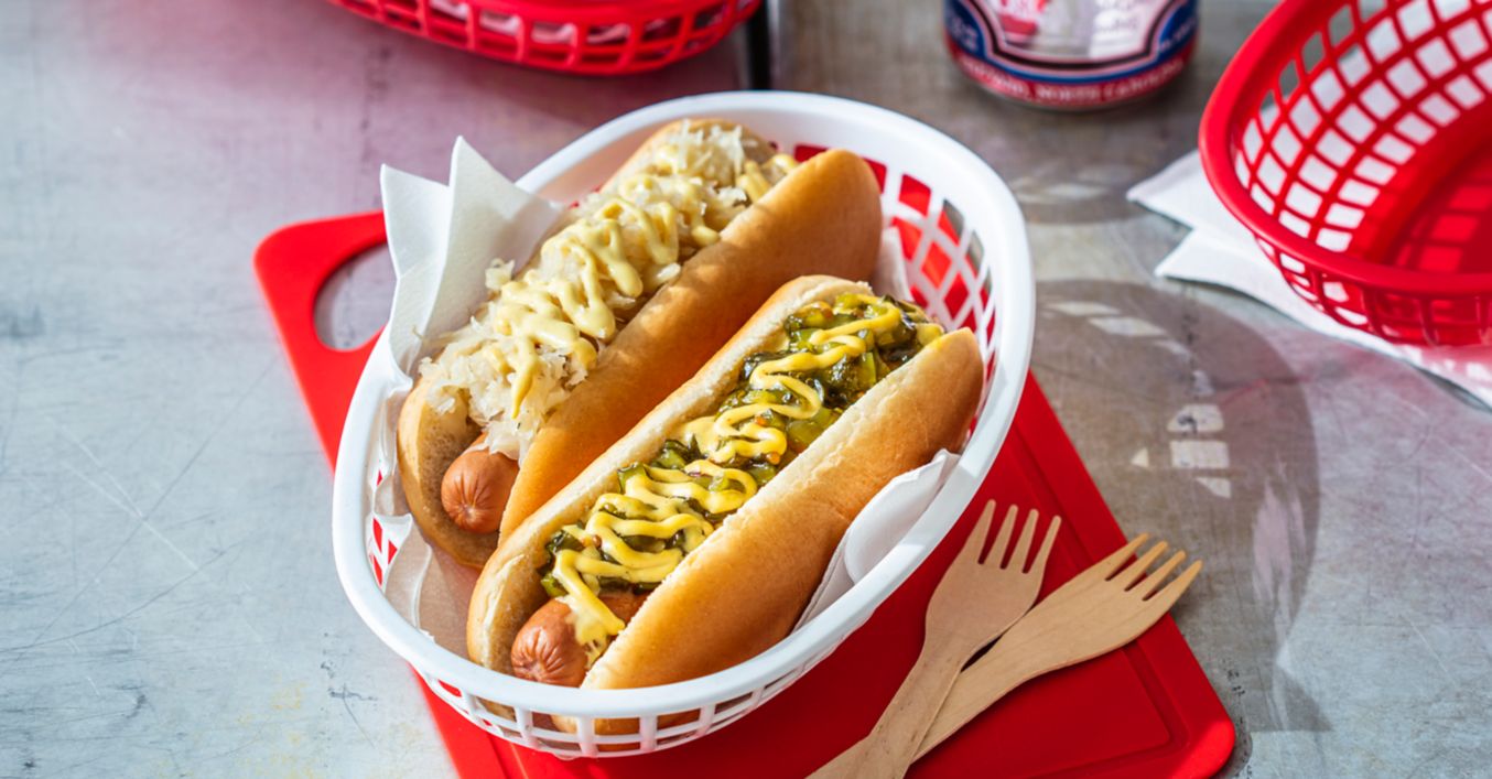 Pentru hotdog, se prăjesc crenvurștii pe un grătar, pe treapta medie, întorcându-i la 3–4 minute. Pâinicile se taie pe orizontală, se pun crenvurștii înăuntru și se ornează cu amestecul de castraveți și muștar.