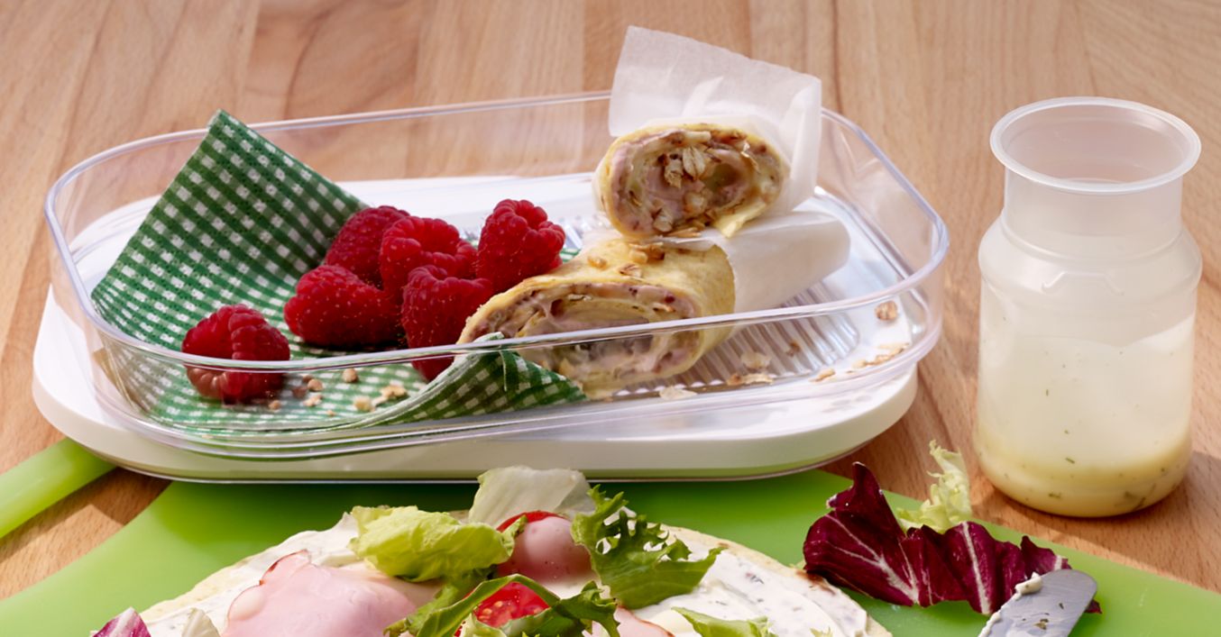 Înainte de servire, înjumătățiți pachețelele pe diagonală. Pachețelele sunt ideale și pentru la școală, picnic sau excursii.