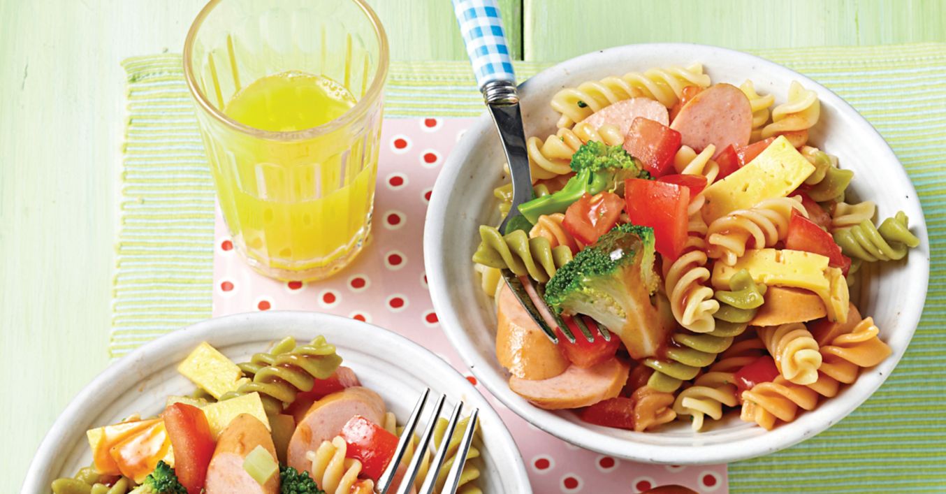 Paste cu crenvurști și broccoli