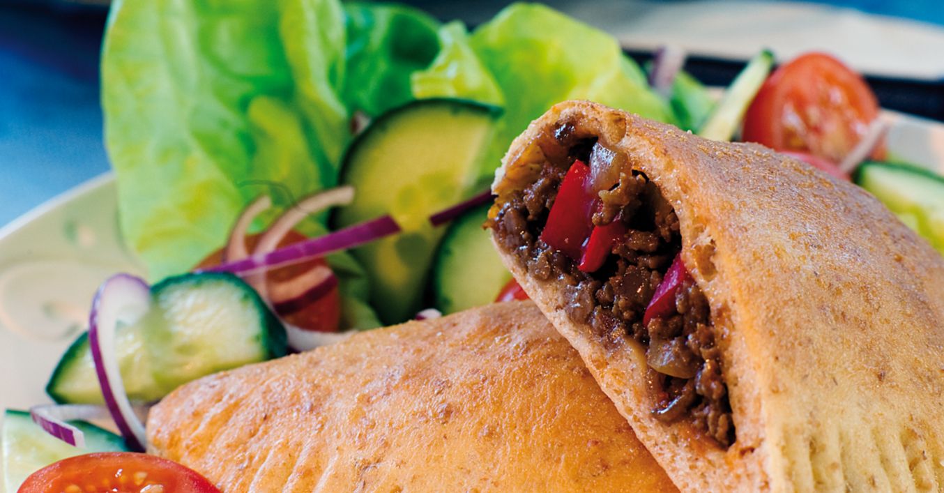 Pe discurile din tavă se pune câte o lingură de umplutură. Se acoperă carnea cu discurile mai mici. Se rulează marginile discurilor de jos, în așa fel încât să nu poată ieși umplutura în timpul coacerii.