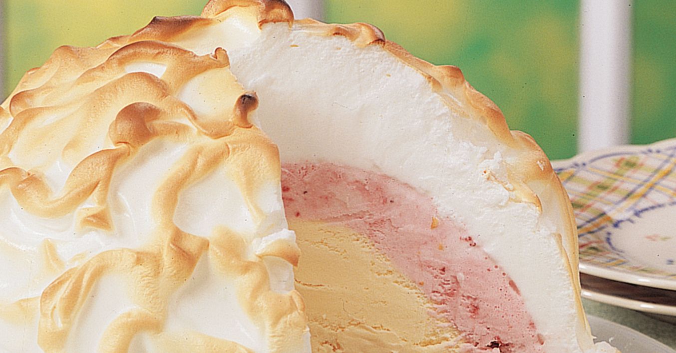 Se întinde repede peste înghețată și negresă. Se coace la 260°C timp de 2–5 minute, sau până când bezeaua se rumenește ușor. Se transferă pe un platou și se servește imediat.