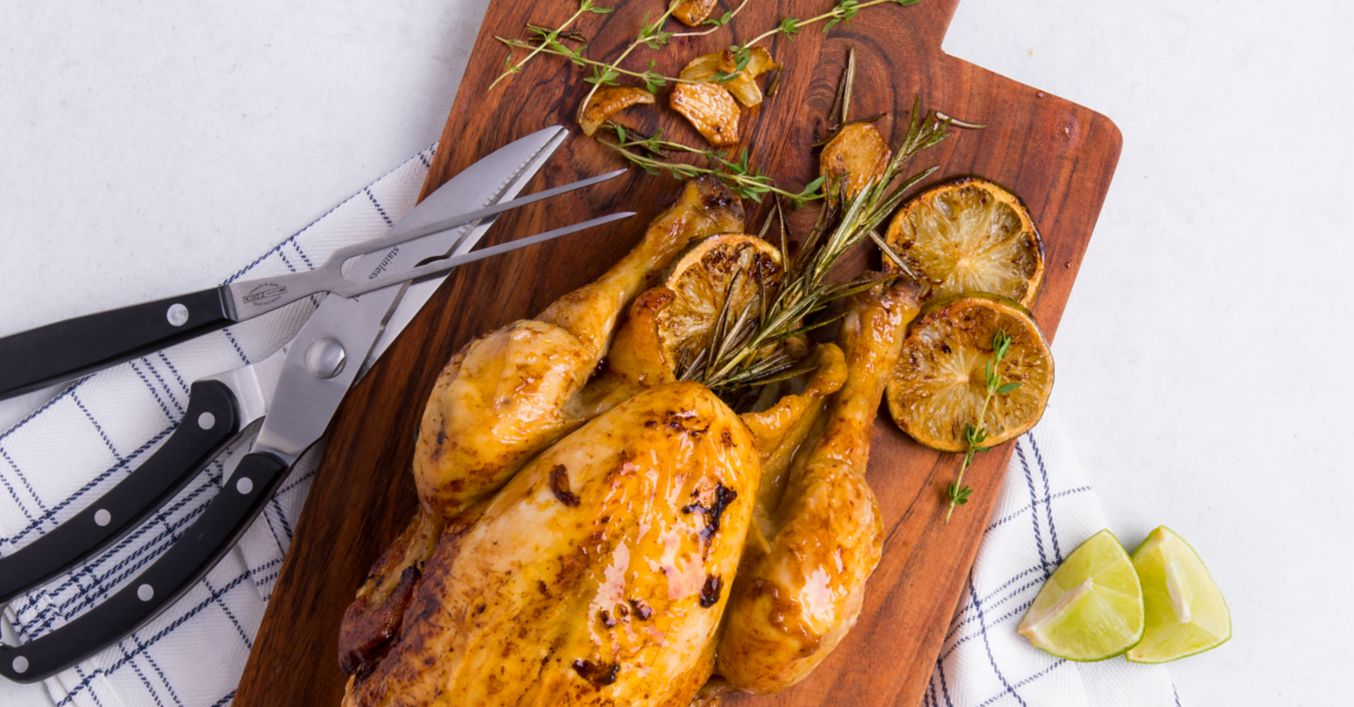 Așază rotisorul în mijlocul grătarului/cuptorului. Unge puiul cu marinata, închide grătarul/cuptorul și lasă puiul la copt aprox. 2 ore, la 150°C, ungându-l de încă două ori cu marinata.