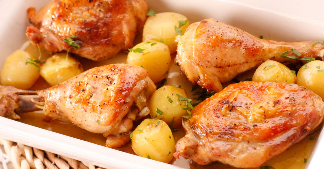 Decojești cartofii, îi speli și îi tai în cubulețe. Îi așezi în tavă în jurul bucăților de carne. Acoperi tava cu folie de aluminiu, o înțepi în câteva locuri, cu un vârf de cuțit și introduci tava în cuptorul încins, pentru 20-30 de minute.