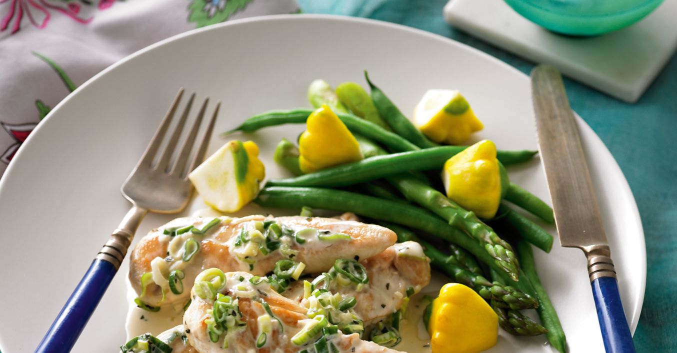 Se pun fileurile de pui la loc în tigaie și se întorc, să se învelească în sos și să se reîncălzească. Se servesc.