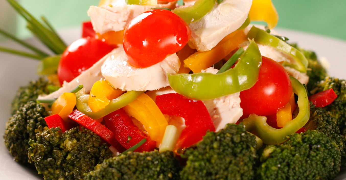 Opărești buchețelele de broccoli pentru 1 minut, apoi le scurgi. Speli și cureți ardeii și ceapa. Tai în cubulețe carnea fiartă, ceapa și ardeii.