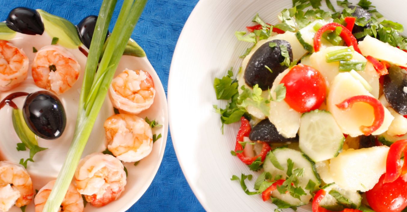 Pui la fiert aproximativ 1 litru de apă împreună cu ceapa tăiată în sferturi, cățeii de usturoi curățați și zeama de la ½ lămâie. Speli creveții, îi adaugi în apa clocotită și amesteci ușor, cu o lingură, timp de 3-4 minute. Îi scurgi și îi lași să se răcească, după care îi vei decortica.