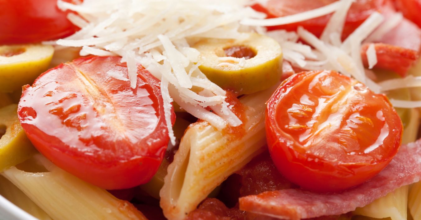 Salată de paste cu roșii și salam
