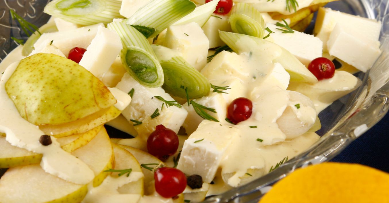 Salată de pere cu praz și caș