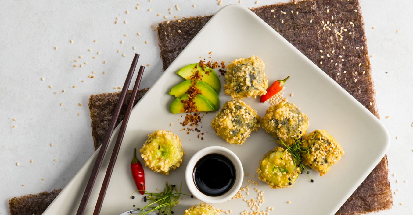 Sushi vegetarian cu avocado în tempura cu susan